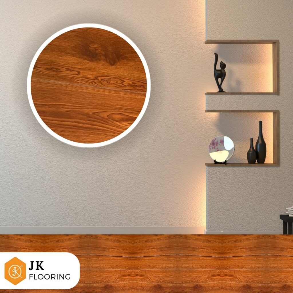 JK SPC flooring is known for its robust construction, making it resistant to impacts, dents, and scratches. It is ideal for high-traffic areas such as commercial spaces, offices, and homes with pets and children.